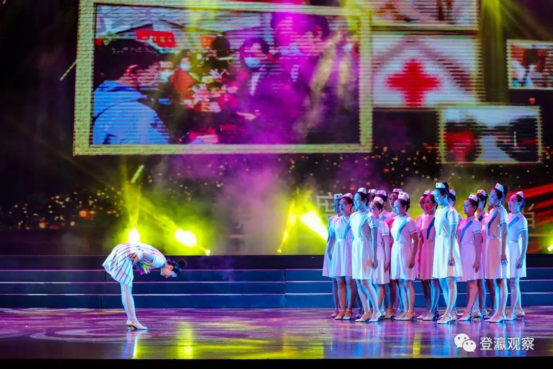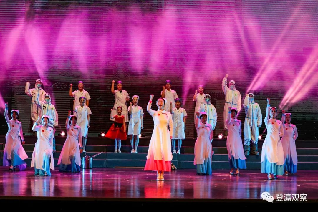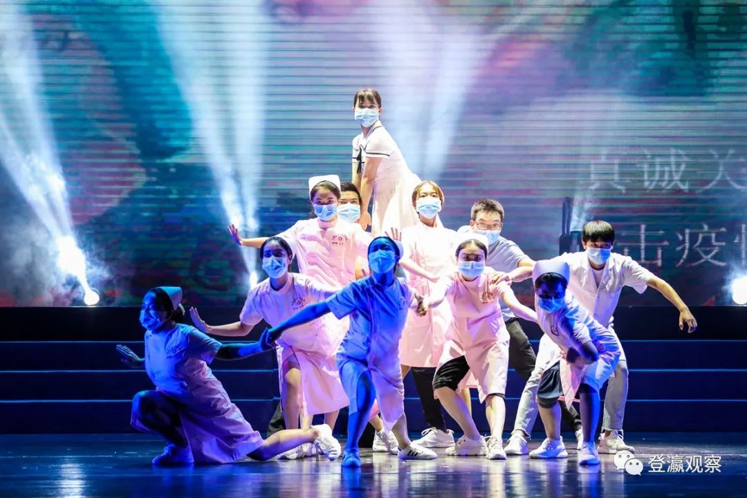 热血铸就初心志,大爱无疆使命扛。亭湖区人民医院倾情献演的情景歌舞《大爱无疆颂英雄》,拉开总展演序幕。一幕幕精彩的歌舞画面,把人们拉回抗击疫情最艰苦的那段日子,通过声情并茂的演出,抒发了医务人员无私奉献的精神。而来自山东聊城市人民医院医务工作人员带来的舞蹈表演《没有硝烟的战场》,更再现了中华儿女团结一致,白衣天使离家赴战场的豪情时刻。
