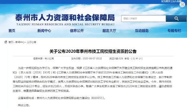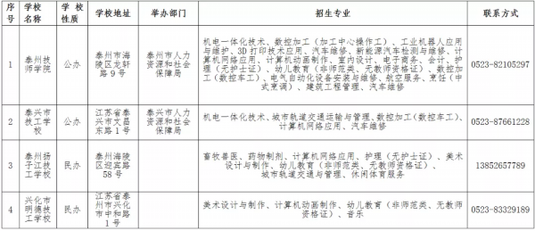 近日,泰州市人力资源和社会保障局发布公告,公布2020年泰州具有招生资质的技工院校。