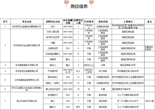 每年8月11日为全国“肢残人活动日”(寓意是肢残人轮椅车的两个轮子和两根手杖)。记者从省残联获悉为进一步促进肢体残疾人就业,助力残疾人用工企业复工复产,苏州市残疾人联合会于今天(8月10日)下午在该市西环路717号阳光大厦1楼就业服务大厅,举办线下专场招聘会。