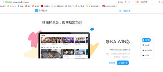 值得注意的是,目前暴风影音网站还能正常打开,不过,网页上仅有暴风5 WIN版可以下载。据中国基金报,有消息称,该App已经被风行在线接管。