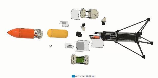 “推力矢量控制(TVC)”“姿态控制”“模块化设计”“可重复使用”……这些都是这枚火箭的“牛”处所在。火箭搭载了刘上自制的TVC发动机。发动机的喷口可以向不同方向偏转,只要稍稍改变方向,就可以保证火箭笔直升空。这枚TVC发动机是刘上此次最满意的设计之一,在民间火箭爱好者的圈子里也是一个不小的突破。此外,发动机使用“c型”燃料内孔,推力平稳;自带起落架,无需发射架辅助便能起飞。