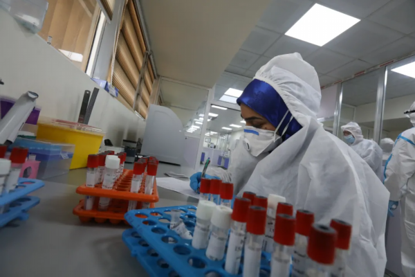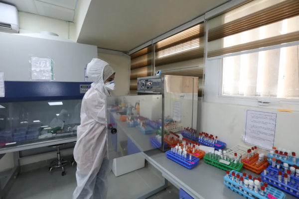 ▲7月29日,伊拉克巴格达,检测人员为检测样本进行病毒灭活。新华社发