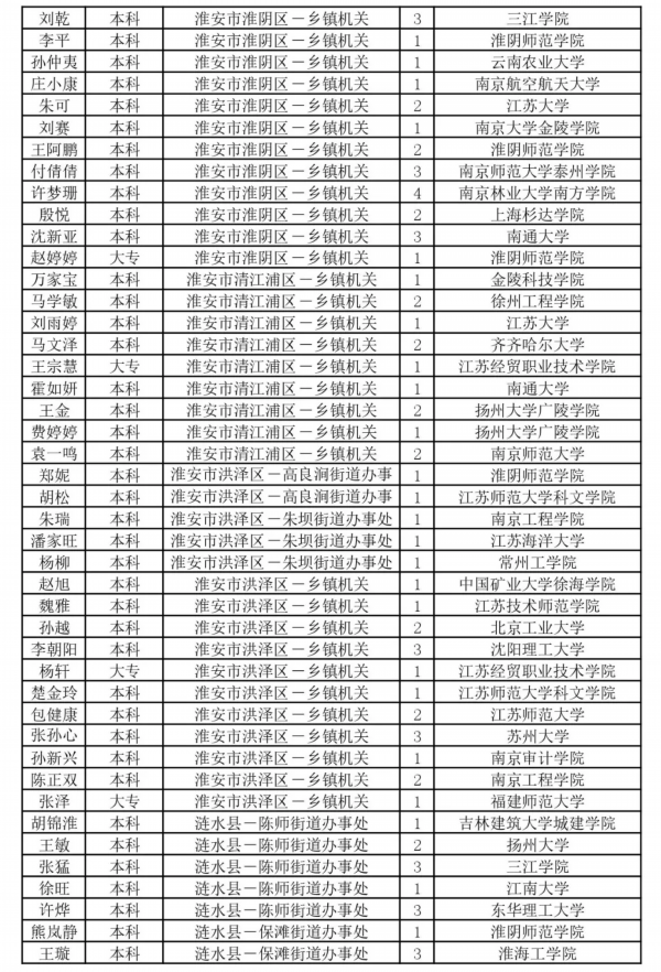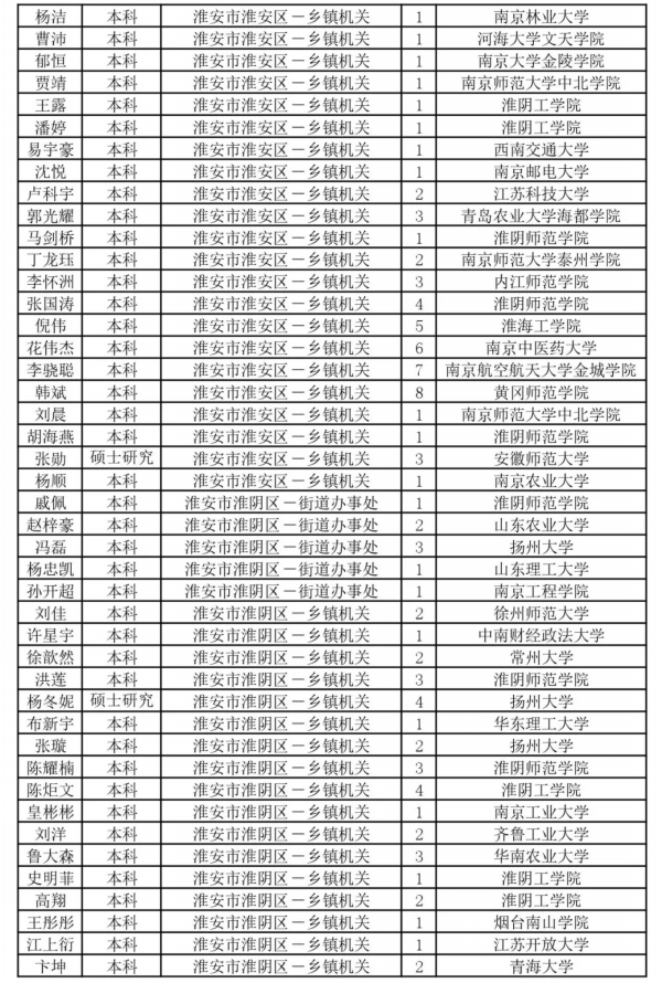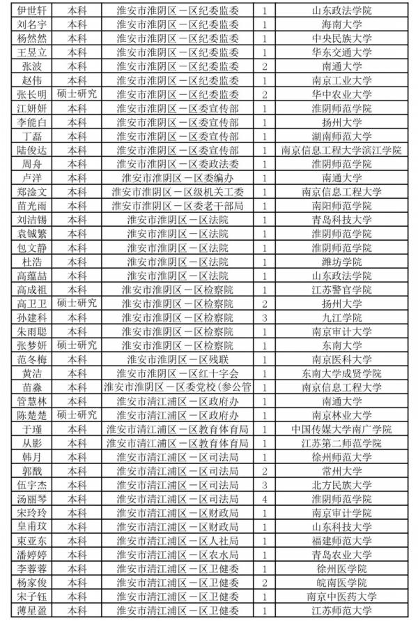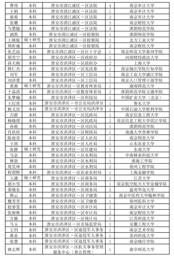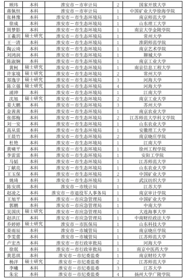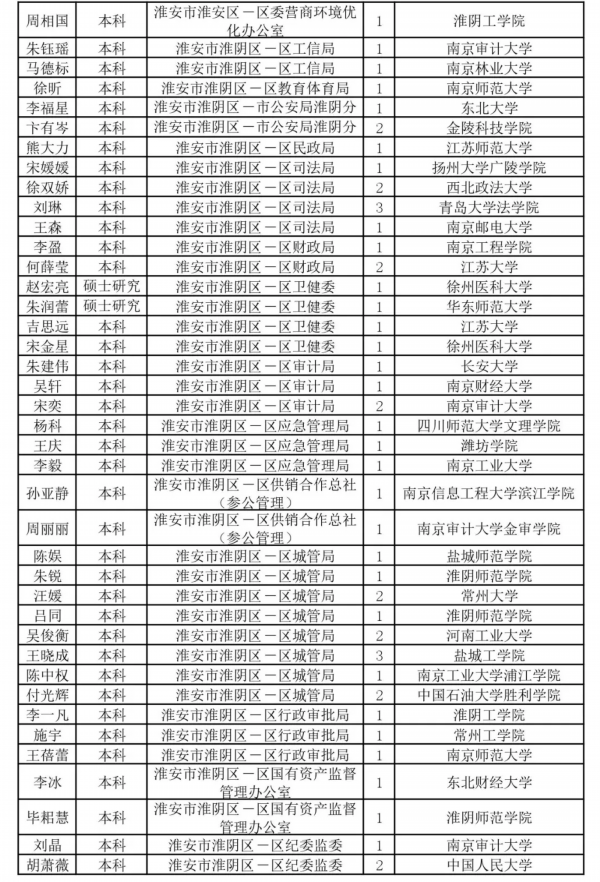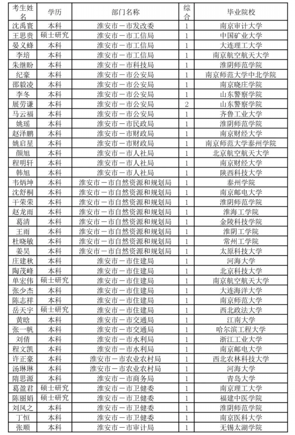 现将淮安市2020年考试录用公务员拟录用人员名单(第一批)予以公示(共834人)
