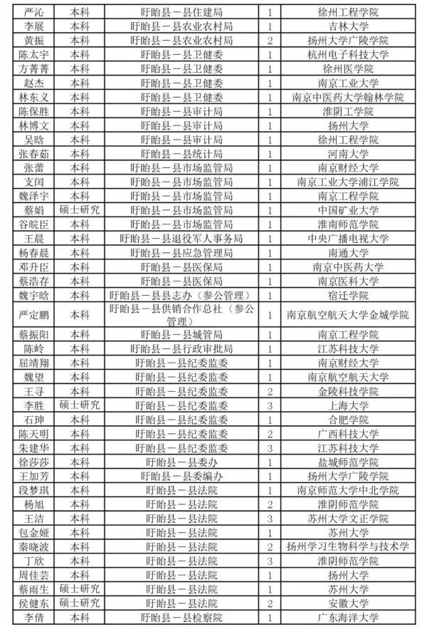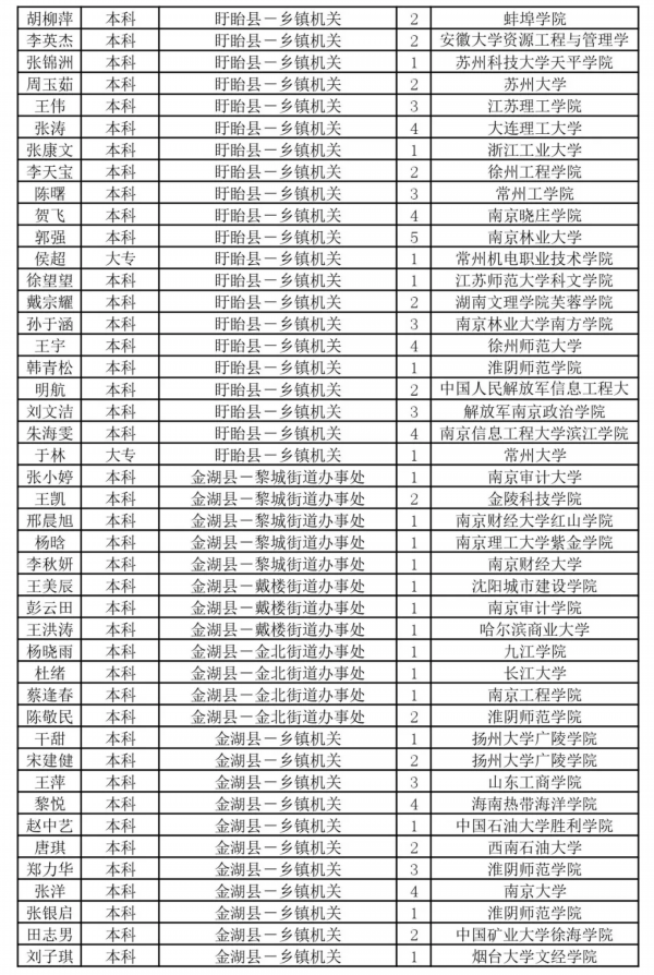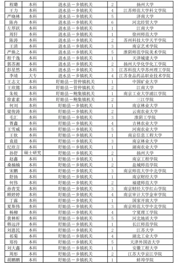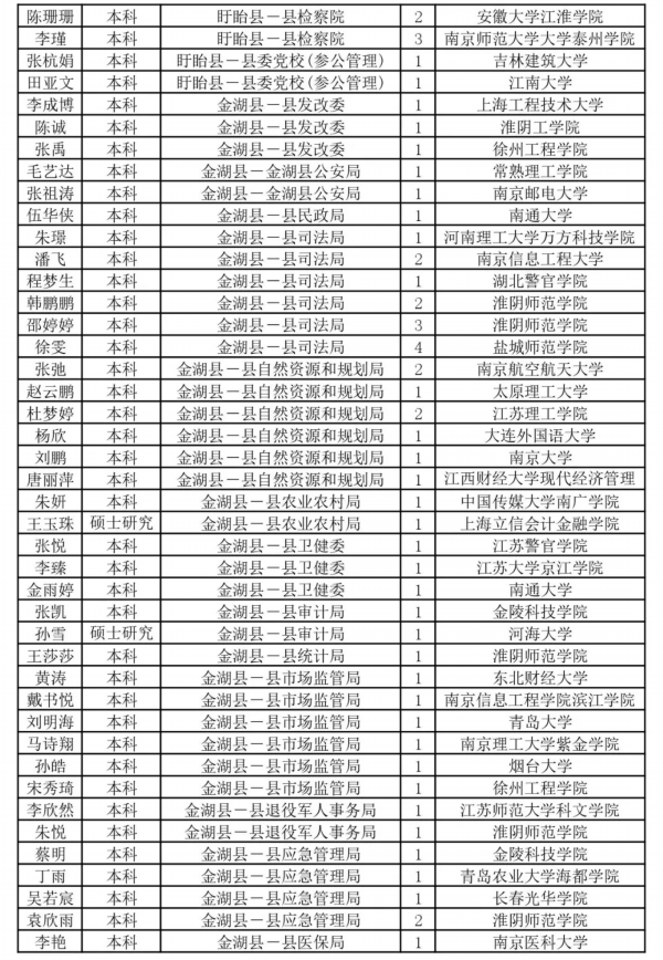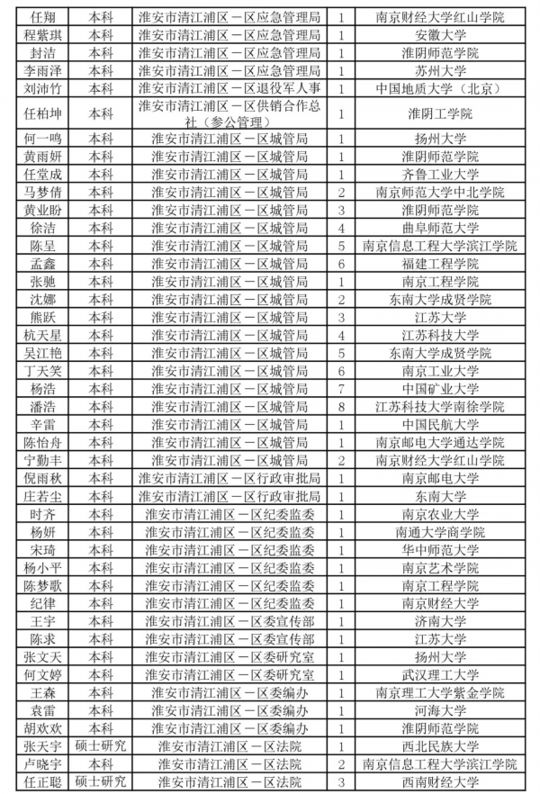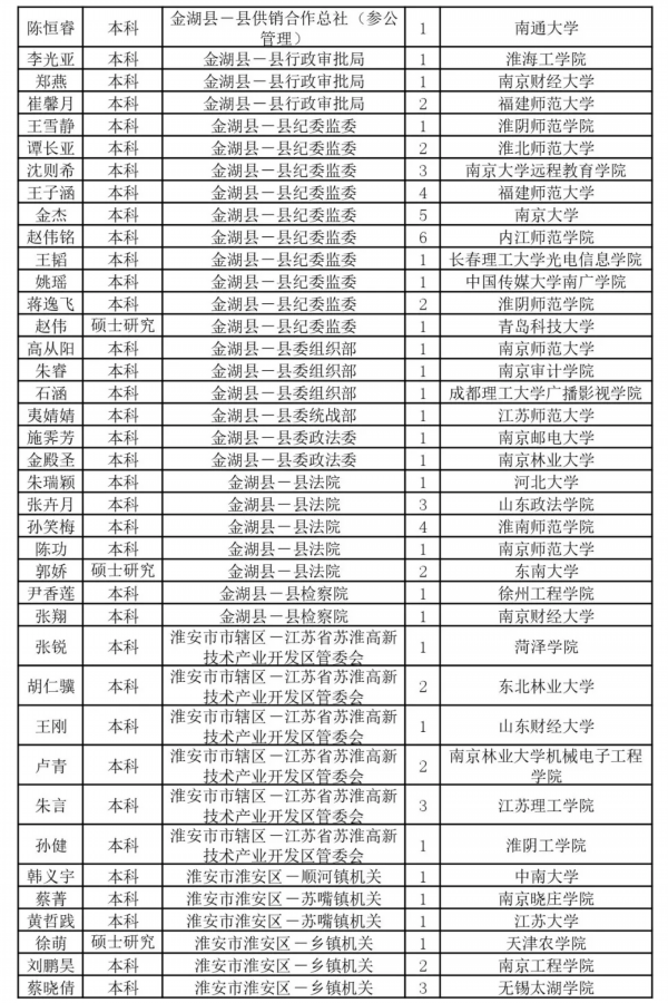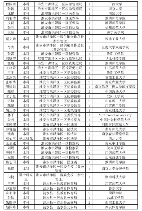 现将淮安市2020年考试录用公务员拟录用人员名单(第一批)予以公示(共834人)