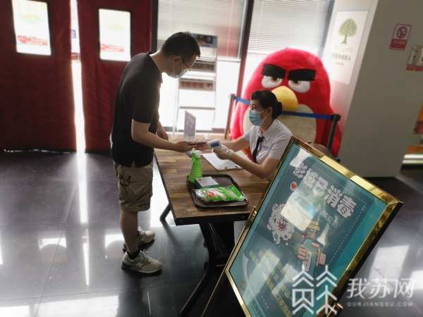 今天(8月11日)下午,记者在幸福蓝海国际影城盐城聚龙湖店看到,不少市民正根据相关部门规定的院线观影要求:佩戴口罩、出示“苏康码”、进行体温检测、有序排队观影。影迷们告诉记者,在苦等6个月后,终于迎来了影院恢复开放,再严格的规定,他们也表示理解和支持。
