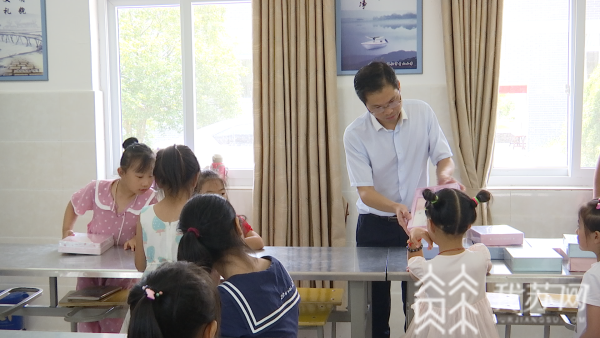 教室里,两名大学生志愿者正在为孩子们辅导作业和手工制作,他们是正在读大三的张翼翀和大一的李雅豪。当得知母校开办了暑期公益培训班后,便主动联系学校,志愿加入到公益辅导员的队伍。“能用这种方式回报母校,帮助家乡的小学弟、小学妹们,觉得非常有意义。”有学长们的加入,课堂内外有了更多的欢乐。对于殷逸甜来说,欢笑中多了一份棋逢对手的挑战。殷逸甜和李雅豪对弈过两次,一次输了,一次打成平手,小姑娘憋着一口气,想要赢过这个大哥哥。第三局比赛开始,不到5分钟,殷逸甜就赢了棋局,一旁的小朋友都高兴地欢呼。