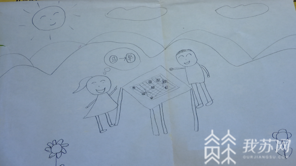 采访现场,殷逸甜画了一幅画,画中是两个小孩在风景怡人的地方下棋,她说:“我希望象棋可以把我带到更远的地方,让我认识更多的人。公益课堂让我交到了更多的好朋友,让我在这个暑假里收获了更多的快乐,我希望整个暑假都是这样!”