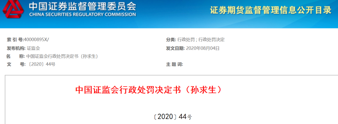 行政处罚决定书显示,孙求生及其代理人在其申辩材料以及听证过程中提出申辩意见,经复核,证监会对孙求生申辩意见不予采纳。