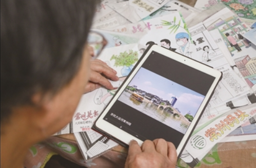 因为左膝关节的伤痛越来越严重,这两年,徐雅清已经基本不出门,更多时候,她通过新闻和平板电脑来搜索要画的题材。
