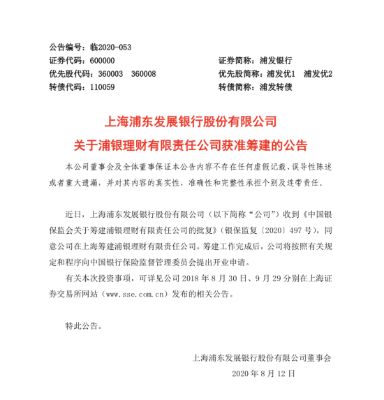 近日,银保监会正式批准上海浦东发展银行筹建理财子公司。筹建工作完成后,浦发银行将按照监管有关规定和程序正式提出开业申请。