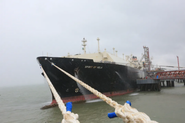 江苏LNG(接收站)克服疫情的影响,我们采取密切跟踪船员动态,采取不见面接卸防疫措施,就是船和我们岸上接卸人员不见面,这样保证疫情防控的安全。