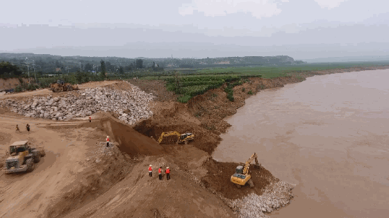 险情发生后,当地政府高度重视,迅速组织大型施工机械和抢险人员投入到抢险中,运输土方1.06万立方米,石料2.3万立方米。目前,黄河河岸坍塌抢险工作仍在继续。