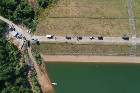 8月14日,厚坊村一带,参与搜捕的车队。新京报记者雷燕超摄