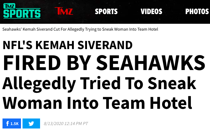由于女伴的身型和橄榄球运动员相差实在太大,最终暴露了目标,被海鹰队高层发现。凯玛·西弗兰德的行为彻底激怒了球队,因为没有经过检测的女伴很明显会大幅增加球队内部人员感染病毒的风险。