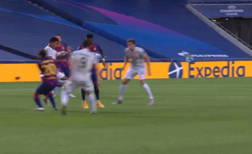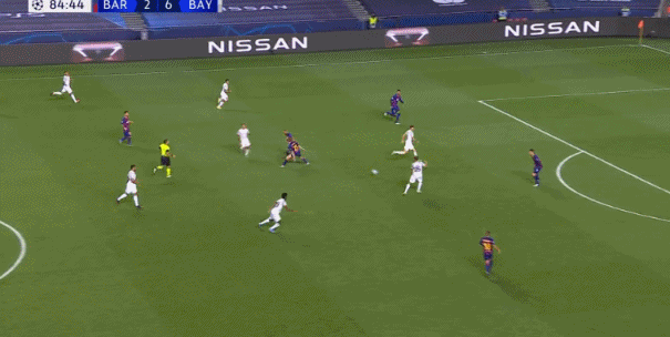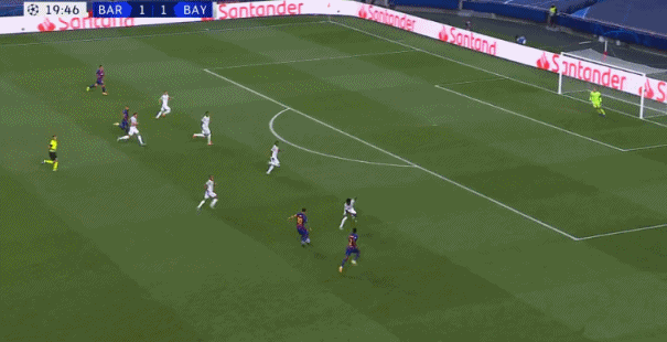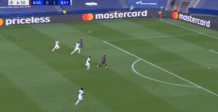 第68分钟,科芒禁区中路推射,阿尔巴飞身铲球解围,随后格纳布里禁区内推射又被挡出。第77分钟,梅西突入禁区低射被诺伊尔没收。