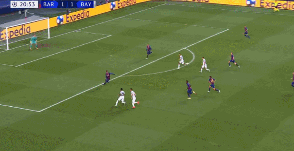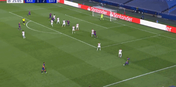 第39分钟,基米希右路角球传中,莱万甩头冲顶,特尔施特根将球没收。第45分钟,朗格莱传球,阿方索-戴维斯解围失误,苏亚雷斯禁区线上凌空抽射,诺伊尔将球摁住。