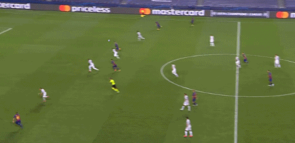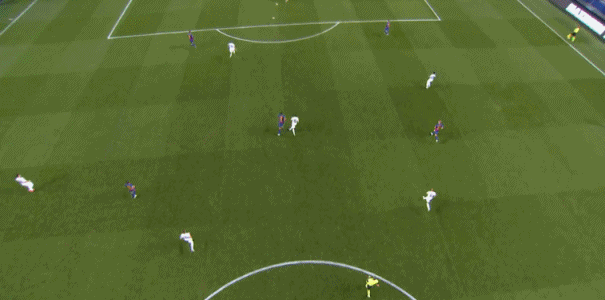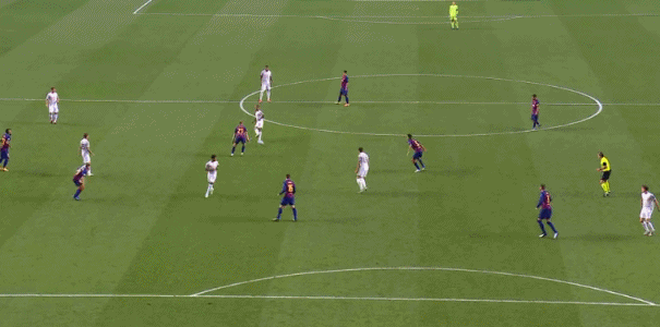 第9分钟,塞梅多右翼穿裆球直塞,苏亚雷斯禁区右肋单刀球斜射,诺伊尔将球封出,巴萨开出战术角球,梅西右翼传中,球弹地后击中左侧立柱。