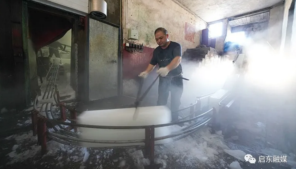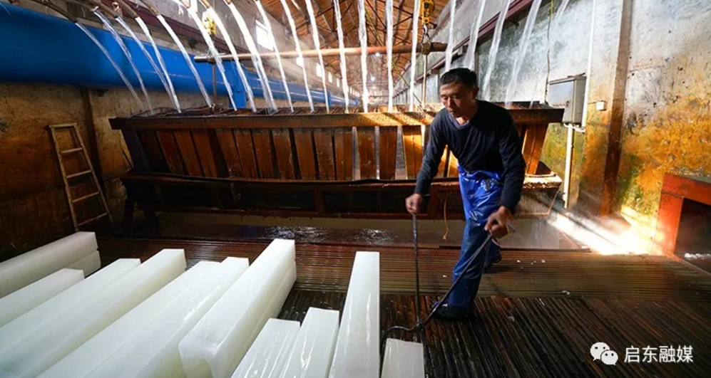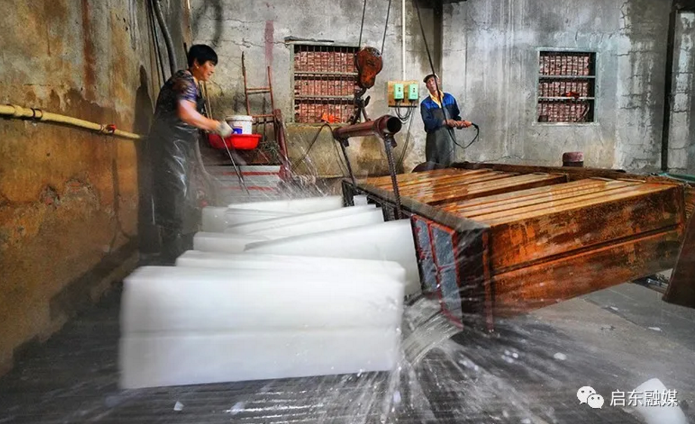 每年,从启东市吕四港制冰有限公司运出的冰块重达15000多吨,其中8、9、10三个月为旺季,出冰量为全年的80%,这是渔民经历漫长休渔期等待后的收获季节,也是制冰工人一年中最忙碌的时节。