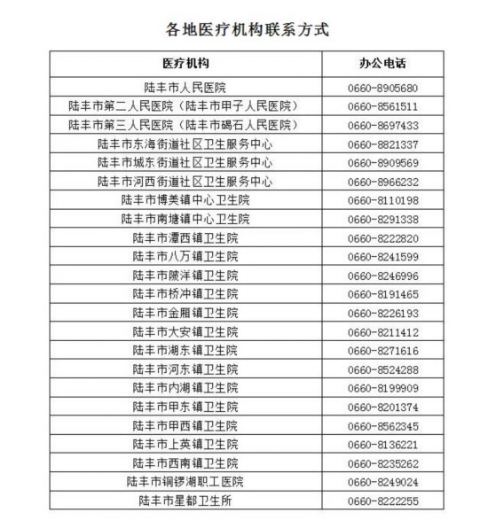 中新网8月15日电 据广东陆丰市人民政府新闻办公室微信公众号消息,2020年8月14日傍晚,陆丰市发现一例新型冠状病毒肺炎病例。为落实疫情常态化防控工作“应检尽检”、“愿检尽检”的相关要求,从即日起,对到过患者工作场所的罗湖区水贝盒马鲜生超市人员、8月6日以来与患者活动轨迹时间地点重叠人员、身体感到不适人员、认为有必要核酸检测人员,可就近前往各地医疗机构(附后)进行免费核酸检测。