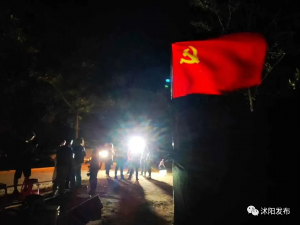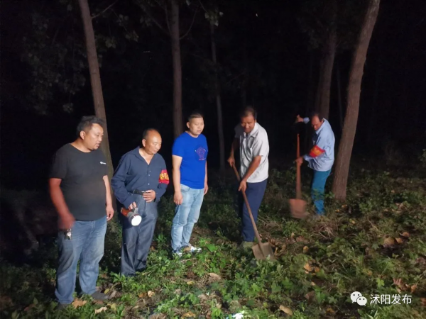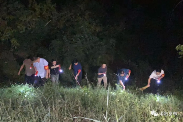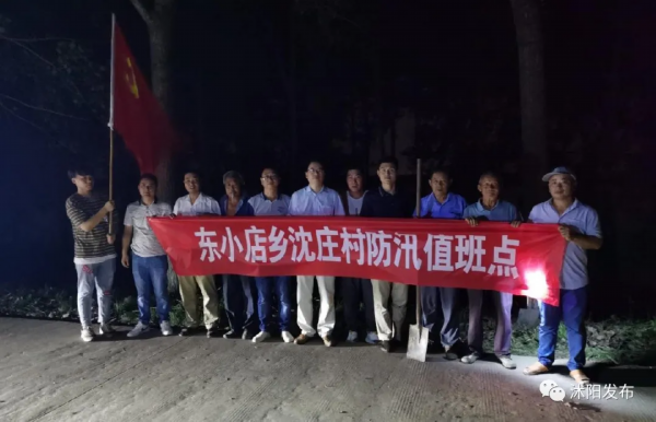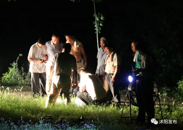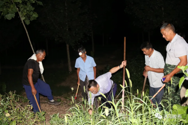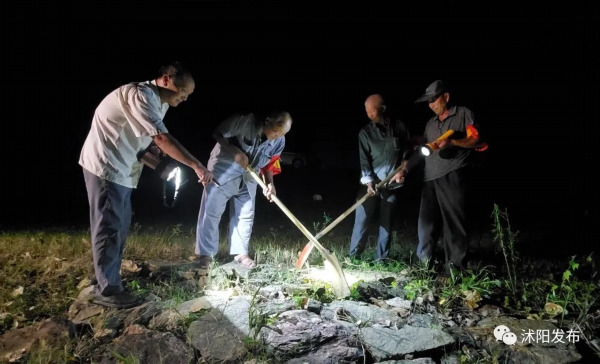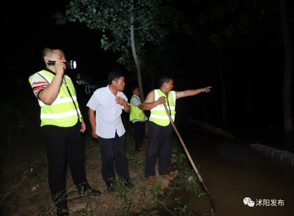 ↑在龙庙镇赵庄村点,夜班人员在找管涌查渗漏。