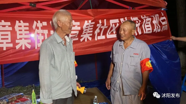 ↑72岁的老党员章加宽说,曾经参加过挖河有经验,现在主动要求上“战场”参与抗洪。
