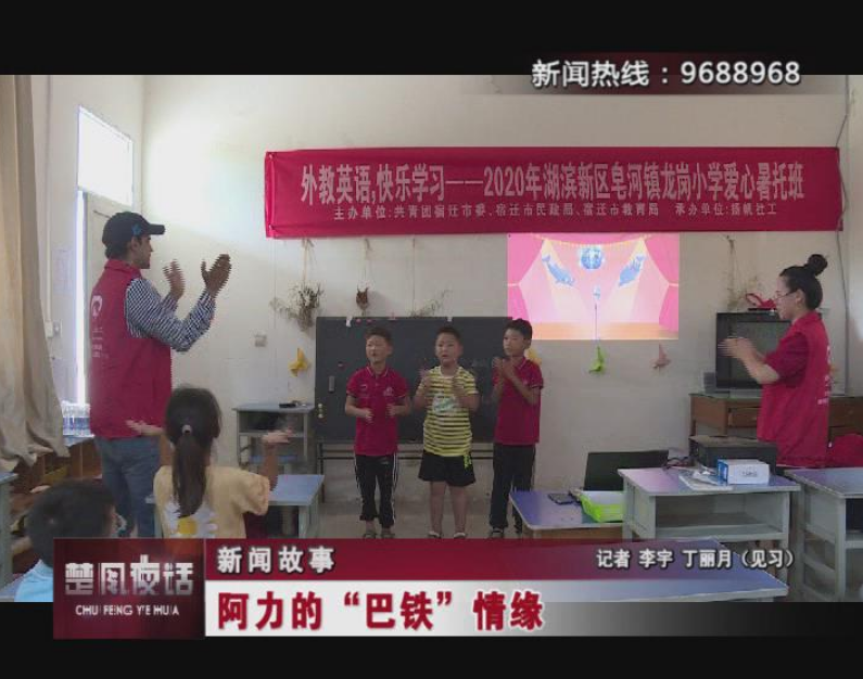 一次偶然的机会,阿力接触到了扬帆社工公益组织,参加了志愿公益服务。今年暑期就到皂河镇龙岗小学进行英语培训,这也是阿力最擅长的事情,课堂上阿力用海豚、游泳、潜水等词汇串联成了一首英文歌,来拉近和孩子们的距离。