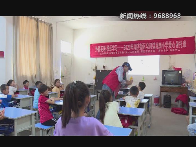 明明是暑假,本应空无一人的校园里却不时传来音乐声和孩子们的爽朗笑声。在湖滨新区皂河镇龙岗小学,村子里的孩子正在学习英语,英语老师还是有着“异域风情”的帅小伙。
