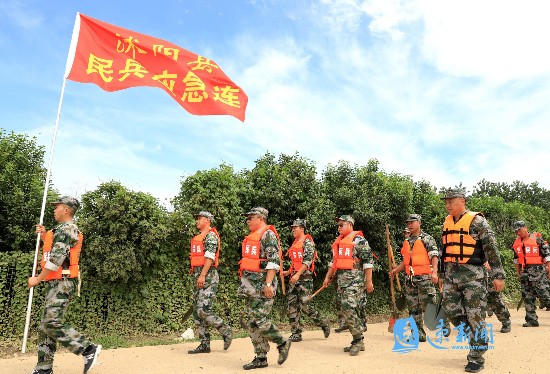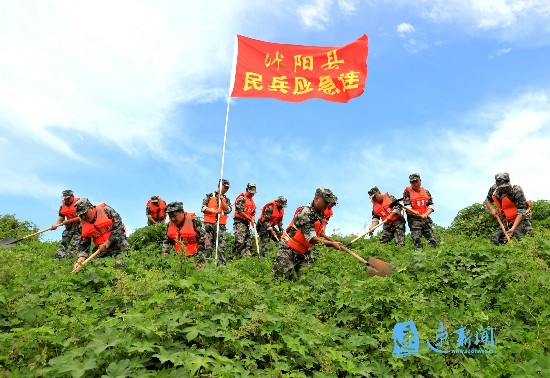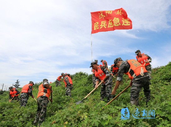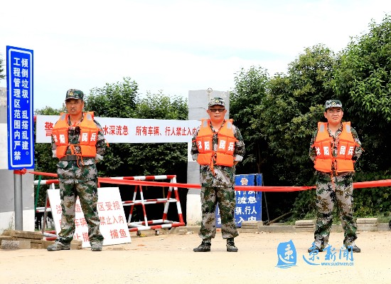 8月15日,沭阳县民兵应急连的一部分基干民兵,在新沂河大堤的堤坡上翻动杂草,查看有无管涌险情,迎战到来的洪峰。因位于上游的骆马湖嶂山闸泄洪量猛增,达到今年以来最大值,沭阳县境内的新沂河即将超过警戒水位。为此,该县于8月14日启动防汛II级应急响应,全县有1300多名基干民兵积极上阵,开展险情巡查和执勤等护堤工作。