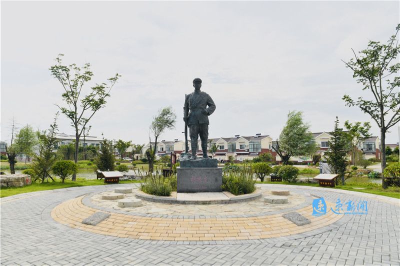 8月13日上午,天气炎热,记者来到振友社区采访。在振友社区党群服务中心前面,一道弯弯的小河环抱着一个小广场——振友广场,广场上,果树环绕、翠竹成荫,胡振友烈士高大的雕像威严肃穆地矗立在广场中央。陪同的新庄镇振友社区党委书记丁春龙向记者追忆了那段峥嵘岁月,介绍了胡振友的感人事迹。