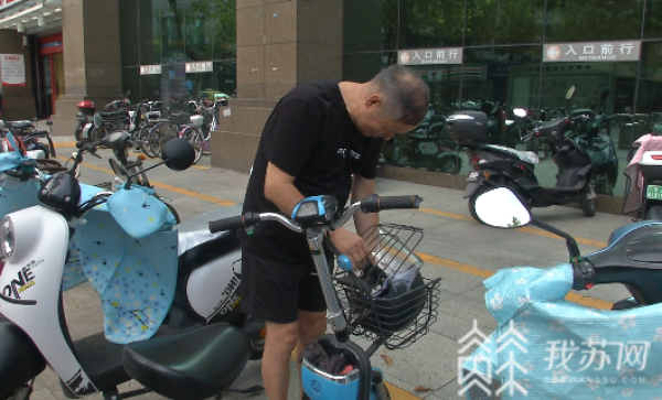 今天上午,记者在南京玄武区一家大型综合商场的门口看到,一些市民停下车后,直接把头盔挂在了车上。南京市民祝女士说,“我基本都是直接挂在车子上面的,一般现在都有监控的,别人不敢拿走的”。