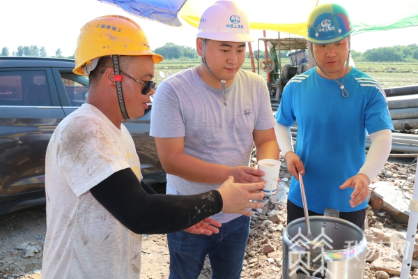 在施工一线,要说最辛苦,测量工作是当仁不让,作为项目部的“急先锋”,他们早出晚归,哪里有施工,哪里就能看到他们的身影。对于今年7月才从安徽理工大学毕业的王虎和潘俊杰来说,红线复测、桩位放样、断面测量、标高控制,这样的工序已经反复干了一个多月了。“动手才发现,理论与现场结合,才能发挥最大战斗力。”在过去的一个月里,小伙子们褪去了大学里青涩的模样,皮肤晒黑了,变得更结实了,技术基础也更加牢固。工程部长赵明川表示,每一位技术人员都是从测量开始干,测量是工程的基础,只有测量工作抓稳了,优质工程的基础才算是打牢了。