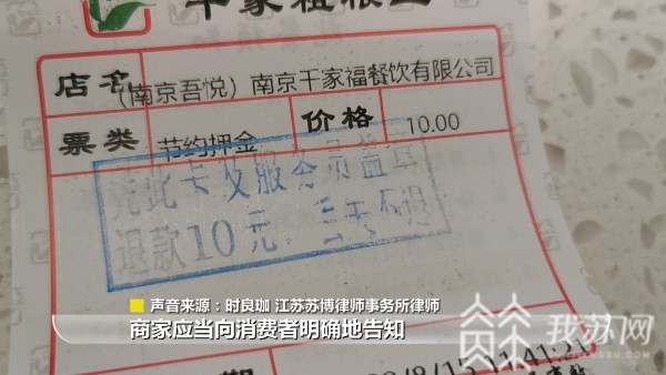 为了倡导节约,目前不少自助餐厅仍在坚持执行押金制度。南京湖北路上的一家自助餐厅,消费者在购票进场时,需要另行缴纳每桌10元的节约诚意金。餐厅服务员表示:“这是倡导节约的押金,为了避免浪费。吃完饭没有浪费,就喊服务员盖章,给您退了。”
