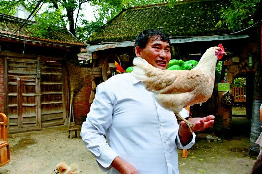 朱之文养了很多家禽,拿它们当宠物。