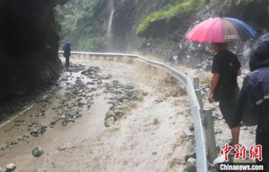 中新网宝兴8月16日电 受持续降雨影响,8月16日早上起,国道351线四川雅安宝兴段已有多处发生泥石流、塌方现象,致道路中断。同时,暴雨已导致宝兴县7个乡(镇)不同程度受灾,当地相关部门已组织21个点位近1500人安全转移。