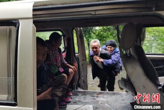 转移群众。宝兴融媒 供图