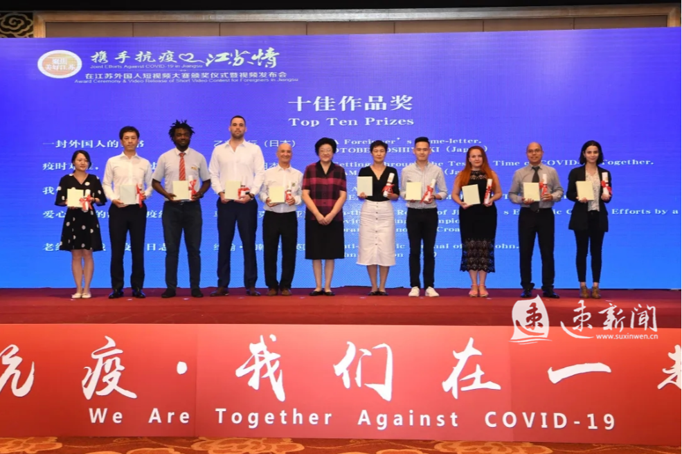 8月6日,在江苏省人民对外友好协会主办的“携手抗疫·江苏情”在江苏外国人短视频大赛颁奖仪式暨视频发布会上,宿迁推送的《老卢的泗阳战疫》短视频获得十佳作品奖,《携手抗疫,圆梦足球》短视频获得优秀奖,宿迁市外办获得组织奖。