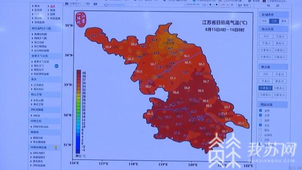 江苏省气象台首席预报员吴海英说,昨天最高温度的分布,看到全省35度以上高温,基本上除了连云港地区,盐城宿迁部分地区33到34度,其它都是35度以上,37度以上高温基本上在沿江苏南,最高的是无锡39度。