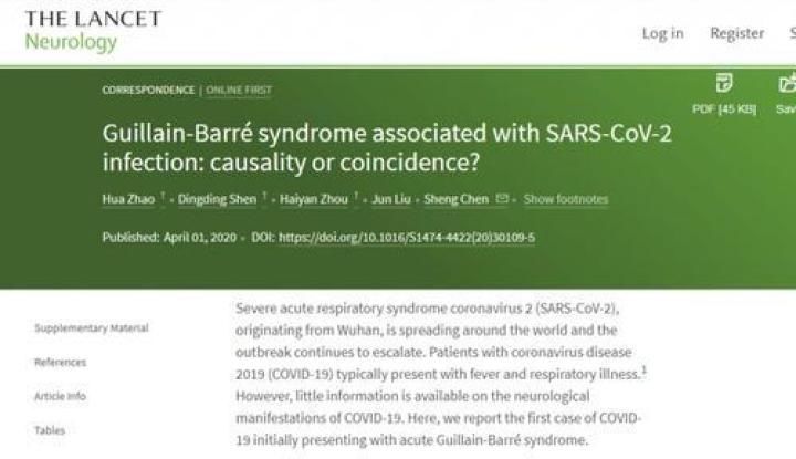 16日,从上海交通大学医学院附属瑞金医院传出消息:南通大学校友、瑞金医院神经内科85后年轻医生沈丁玎博士以共同第一作者的身份报道了全球首例与SARS-CoV-2(新冠病毒)相关的格林-巴利综合征,相关论文在线发表在今年4月的《柳叶刀·神经病学》(Lancet Neurology,影响因子 28.755)杂志上。该论文发表后被学术界广泛引用,截至目前已经被引用70余次。其中,不乏《NANTUER MEDICINE(自然·医学)》(影响因子27.363)《神经病学年鉴》等高影响因子学术刊物。