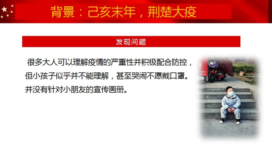 2020年初,由于新冠病毒的蔓延,武汉封城,全国上下居家隔离,过年没有走亲访友,没有家庭聚会,每天都会打开手机查看确诊数字和死亡数字,打开电视关注疫情前线的最新消息,成为了大家共同的记忆。作为一名供电员工,我们坚守岗位,随时保电供电,同时宣扬防疫知识。但在宣扬的过程中,我发现相较于成年人,小孩子很难理解疫情的严重性,甚至哭闹抗拒口罩,于是我萌生了一个想法:以图画的形式制作防疫绘本。