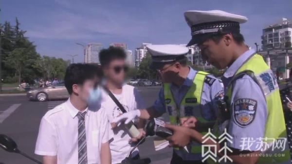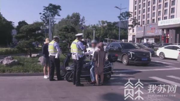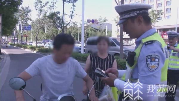 上午八点,记者在扬州文昌路和百祥路十字路口看到,执勤交警正在集中查处电动自行车违规行为。一些骑手违规载人,被抓了现形。