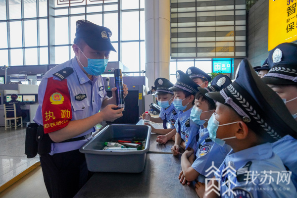 上午,警娃们身穿迷你警服,在民警的引导下参观了警营与车站,零距离感受民警日常工作:在警体房内参观了常用警械的使用;在南站北广场警娃们观看了最小反恐作战单元的演练,亲身体验了反恐技战法;大家还前往安检区域,了解高铁安检的小知识。