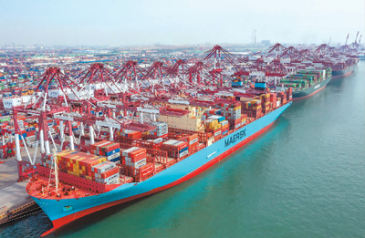 自贸区的设立,为山东开放发展注入了新动力。位于山东自贸区青岛片区内的青岛港,充分利用区内各项优惠政策,实现快速发展。图为今年7月2日,一艘货轮正在装卸货物。