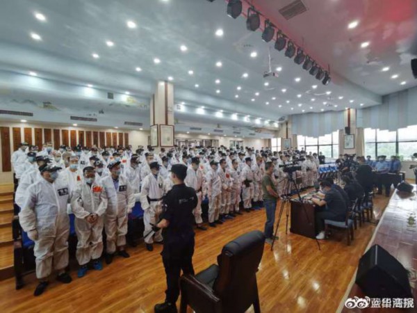 今天(8月18日),西安蓝田人民法院在县图书馆对被告人李梁、李博等48人涉黑社会性质组织犯罪案一审公开宣判。除一人因患严重疾病,中止审理外,47名被告人分别获1年又6个月至25年不等有期徒刑。