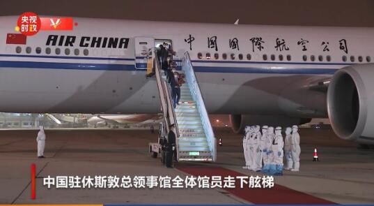 北京时间8月17日19:30左右,中国驻休斯敦总领事馆全体馆员顺利抵达北京首都国际机场。随后,飞机舱门打开,中国驻休斯敦总领事馆全体馆员走下舷梯,踏上祖国的土地。