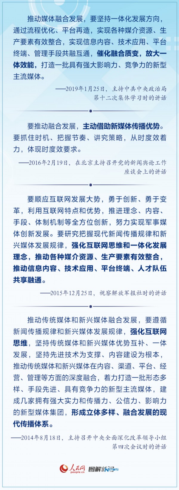 十八大以来,推动媒体融合发展是党中央的重大决策和战略部署,加强顶层设计、体制机制创新也成为媒体融合发展的应有之义。一步一个脚印,习近平总书记多次在媒体考察调研、新闻舆论工作会议上等重要场合都提出了媒体融合发展的方式和路径。