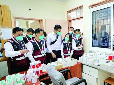 中国赴巴勒斯坦抗疫医疗专家组6月15日在巴勒斯坦工作。图为15日,在约旦河西岸城市拉姆安拉的阿马里难民营,专家组走访一家诊所的药房。新华社发