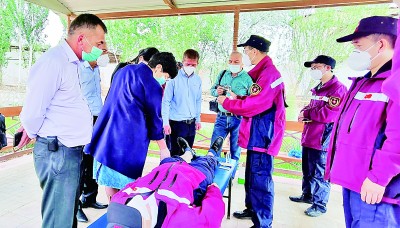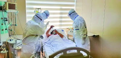 中国抗疫医疗专家组8月10日在阿塞拜疆进行调研交流,与阿方同行进行业务交流,并介绍中国在新冠肺炎救治方面的成熟做法。图为中国抗疫医疗专家与新冠肺炎患者交流。新华社发
