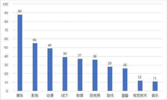 从2019年文化消费行业投融资情况来看,宋洋洋指出,一方面,二级市场传媒板块企稳回升,游戏和出版发行盈利能力强,“去年传媒行业首次得到正涨幅,行业开始进入恢复发展的阶段”;另一方面,一级市场创投降温,偏向于互联网大厂布局。“媒体和影视是最受关注的赛道,而媒体、影视、动漫则是位列三甲的细分赛道。”宋洋洋表示。