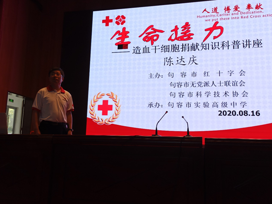 生命接力讲师团老师陈达庆为高一新生们开展了主题为“生命接力—造血干细胞捐献知识” 的科普讲座。
