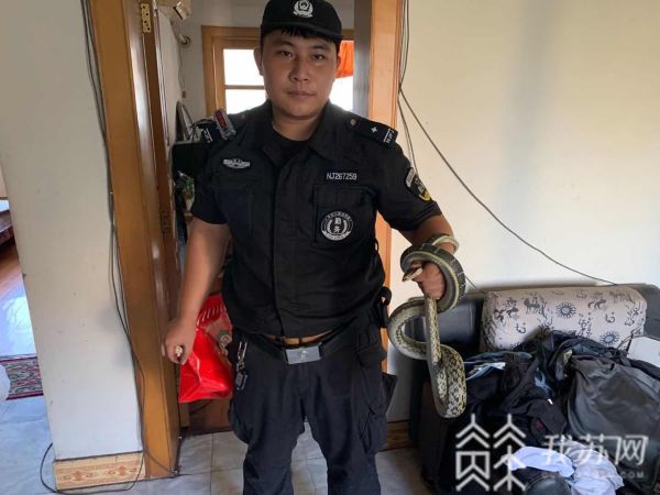 8月17日早上7时,南京市公安局江北新区分局特巡警支队十村警务站接到报警称:家中阳台有一条1米多长的大蛇,也不知道有没有毒,请民警帮忙处置。